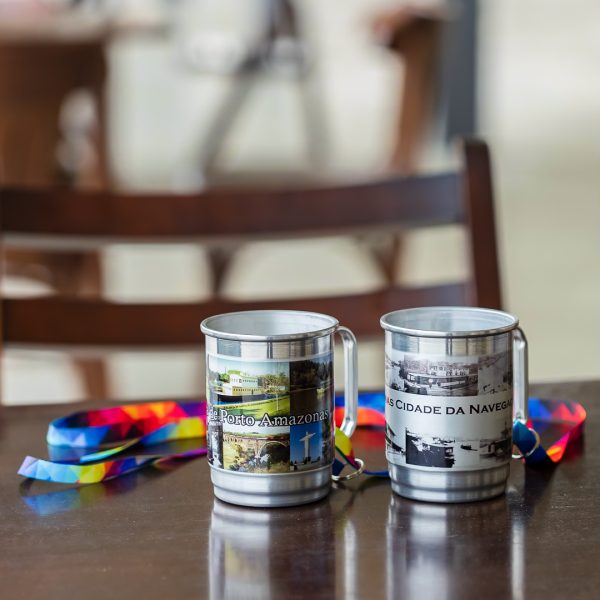 Descrição: Caneca personalizada através de sublimação com imagens de pontos turísticos da cidade.